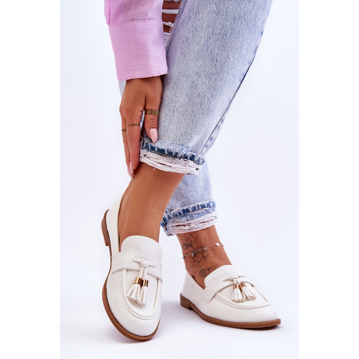 Inna marka Klasične kožne mokasine s resama, bijele majice na rukavima bijela