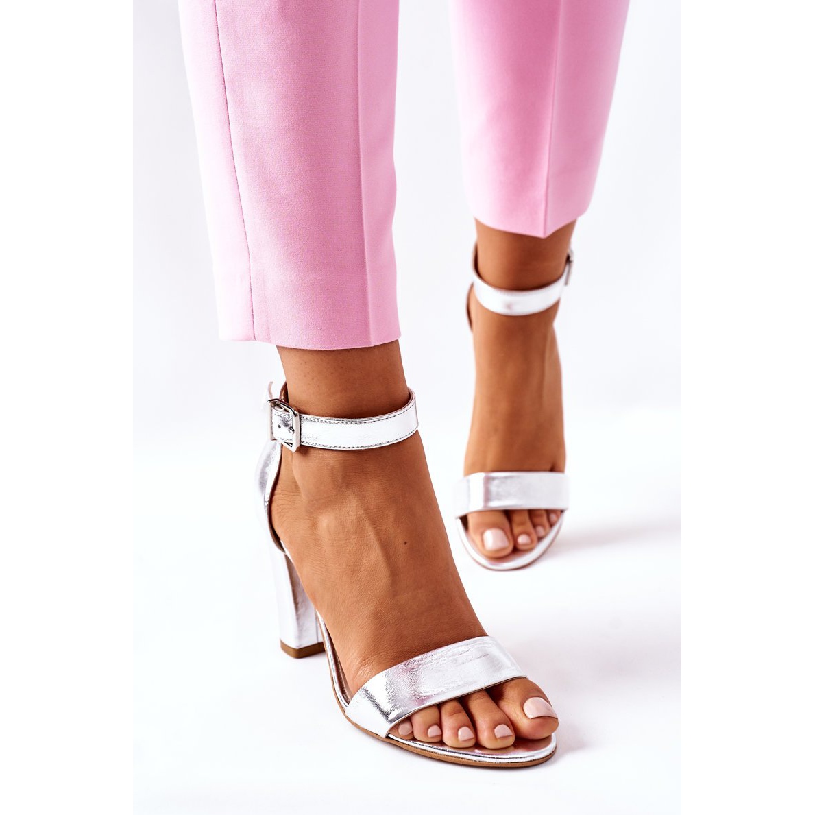 Laura Messi Klasične kožne sandale na baru Laura Messi 1760 srebrna srebro