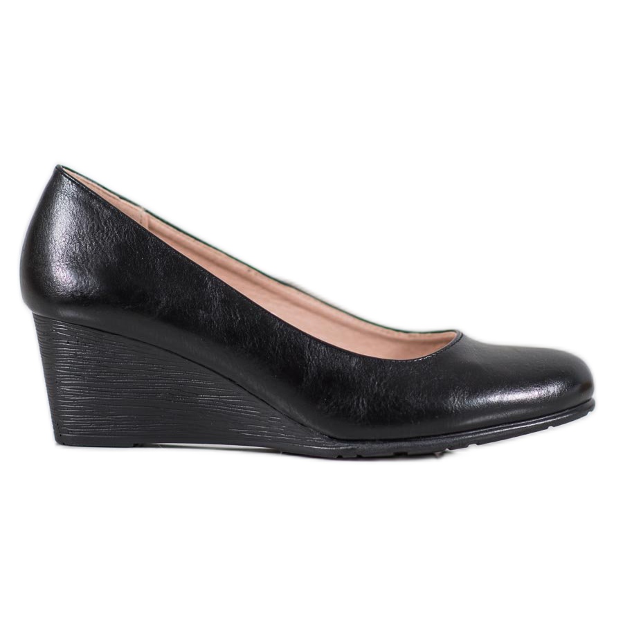 Klasične VINCEZA cipele na klin u crnoj boji savršen su izbor za žene koje cijene eleganciju i svakodnevnu udobnost. Ove jednostavne, ali iznimno elegantne cipele ulaganje su dugi niz godina. Izrađene od ekološke kože, odlikuje ih povećana izdržljivost, što ih čini otpornima na brza oštećenja.