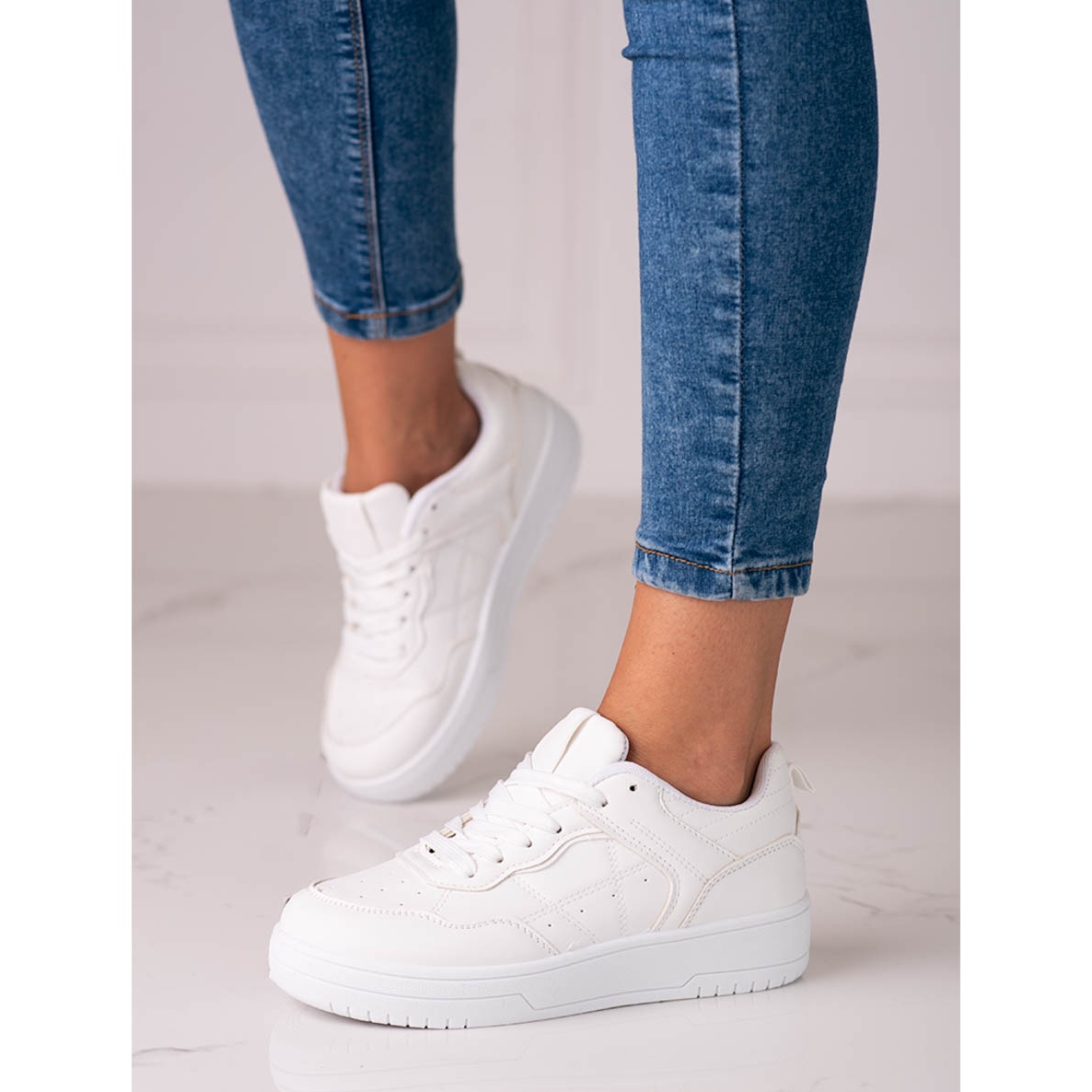 Pojedinosti: Klasične sportske ženske tenisice Shelovet od ekološke kože bijele boje bijela