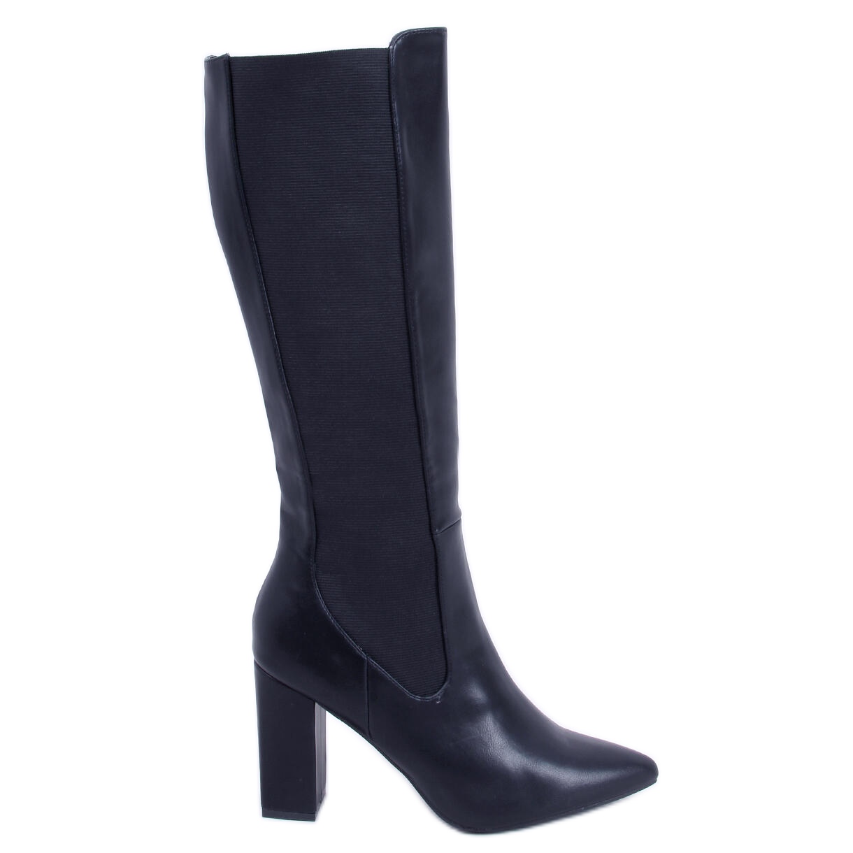 Njihov oblikovan dizajn s bademastim vrhom i gornjim dijelom do koljena naglašava figuru, a elastični umetak nalik Chelsea čizmama i patentni zatvarač sa strane osiguravaju udobnost nošenja i jednostavno obuvanje. Visina pete od 9,5 cm na bloku čini svaki korak udobnim, bez žrtvovanja modernog izgleda.