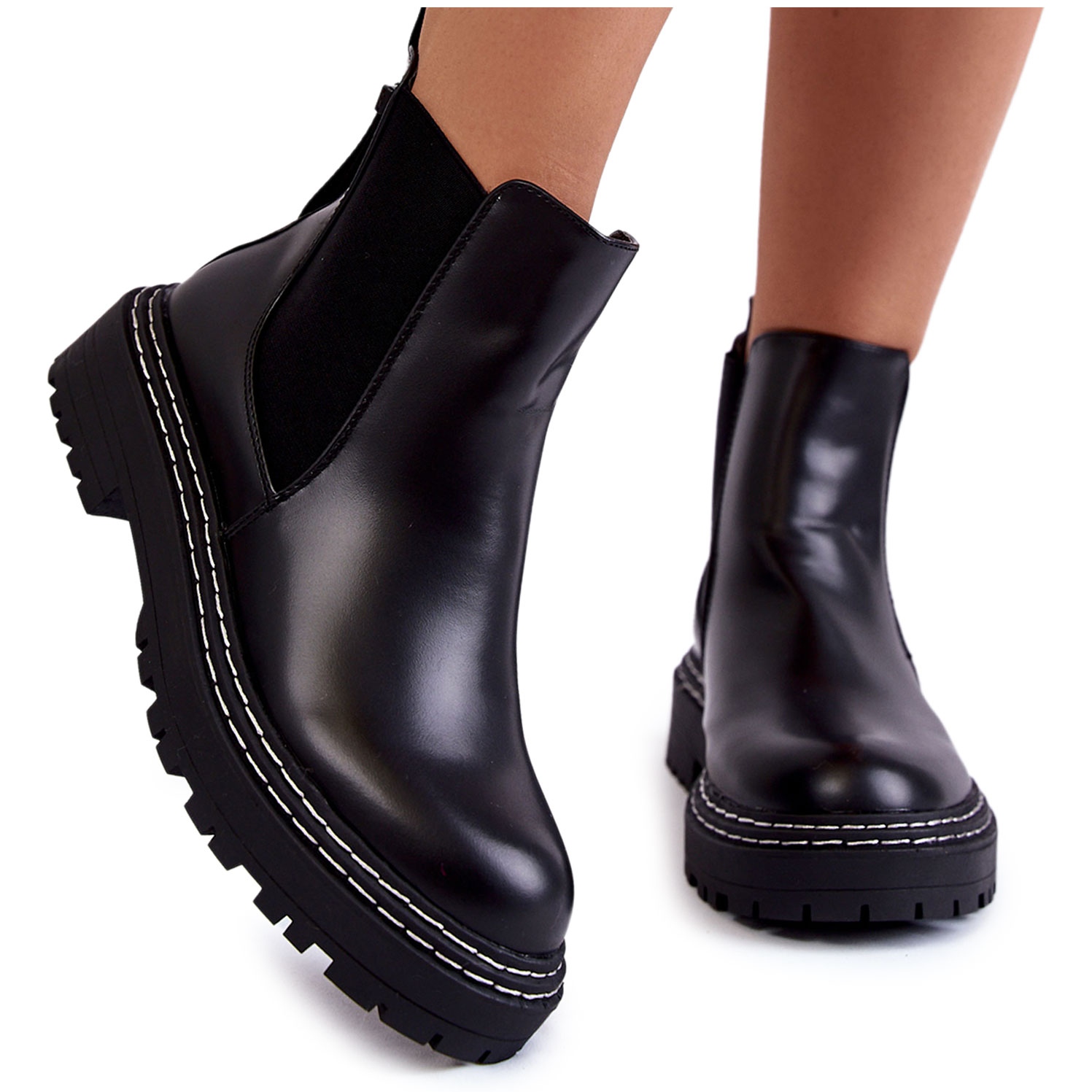 Funkcionalni patentni zatvarač smješten na stražnjoj strani cipela olakšava ih obuvanje, što ih čini iznimno udobnima u svakodnevnoj uporabi. Postavljene na stabilnu ravnu petu s platformom (visine 4,5 cm), čizme pružaju udobnost pri svakom koraku, a njihov trapper potplat osigurava dobro prianjanje uz podlogu.