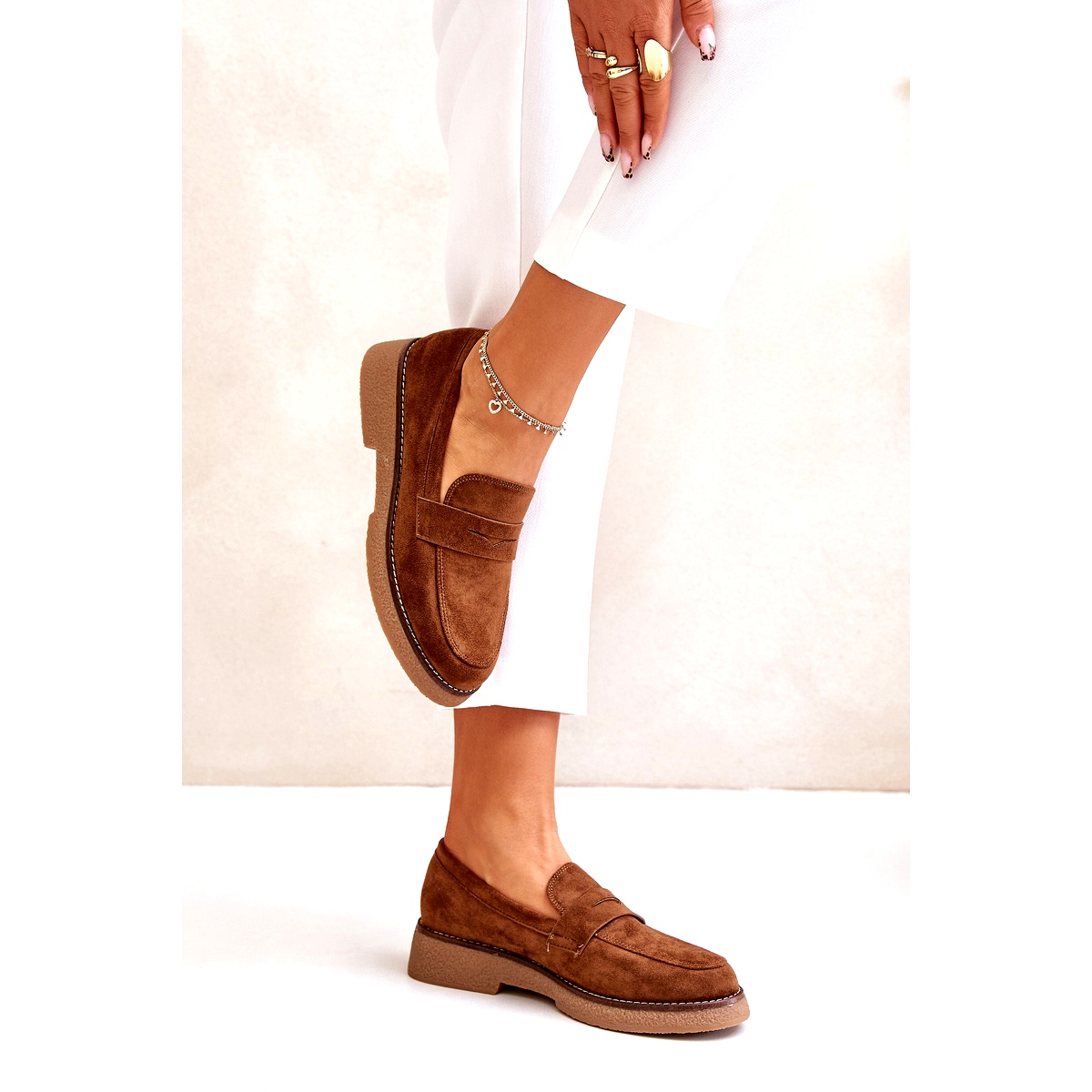 Otkrijte klasik u modernom izdanju zahvaljujući ženskim mokasima Bellucci koji oduševljavaju na prvi pogled! Izrađene od visokokvalitetne eko antilop, ove smeđe lomace kombiniraju stil s udobnošću, pružajući udobnost na svakom koraku. Njihova ravna peta s visinom od 4 cm čini ih savršenim i svakodnevno i za formalnije prigode.