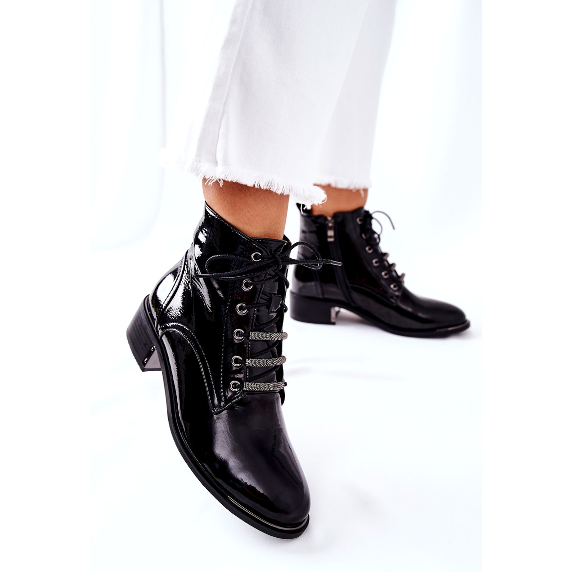 Pojedinosti: D&A Klasične ženske tople čizme lakirane crne refleksije crno