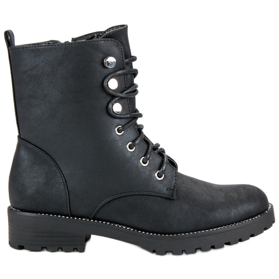 Otkrijte jedinstven stil uz Classic Lace-up Workers u crnoj boji. Ove moderne ženske gležnjače, izrađene od visokokvalitetne ekološke kože, spajaju klasičan stil s modernim izričajem. Vezice omogućuju savršeno pristajanje uz stopalo, a debeli potplat s gazištem izvrsnu izolaciju, što ih čini savršenim za hladnije dane.
