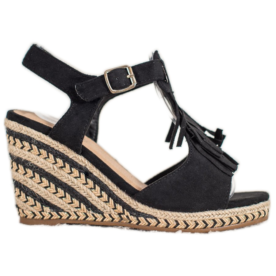 Ovdje su savršene opcije za ljeto - crne antilop klinove s resama od proizvođača Small Swan. Ovaj model je klasik koji će funkcionirati u svakoj situaciji. Zahvaljujući univerzalnoj boji, ove sandale savršeno pristaju uz elegantnu bijelu haljinu i casual plave traperice, pružajući elegantan izgled svakoj ženi.