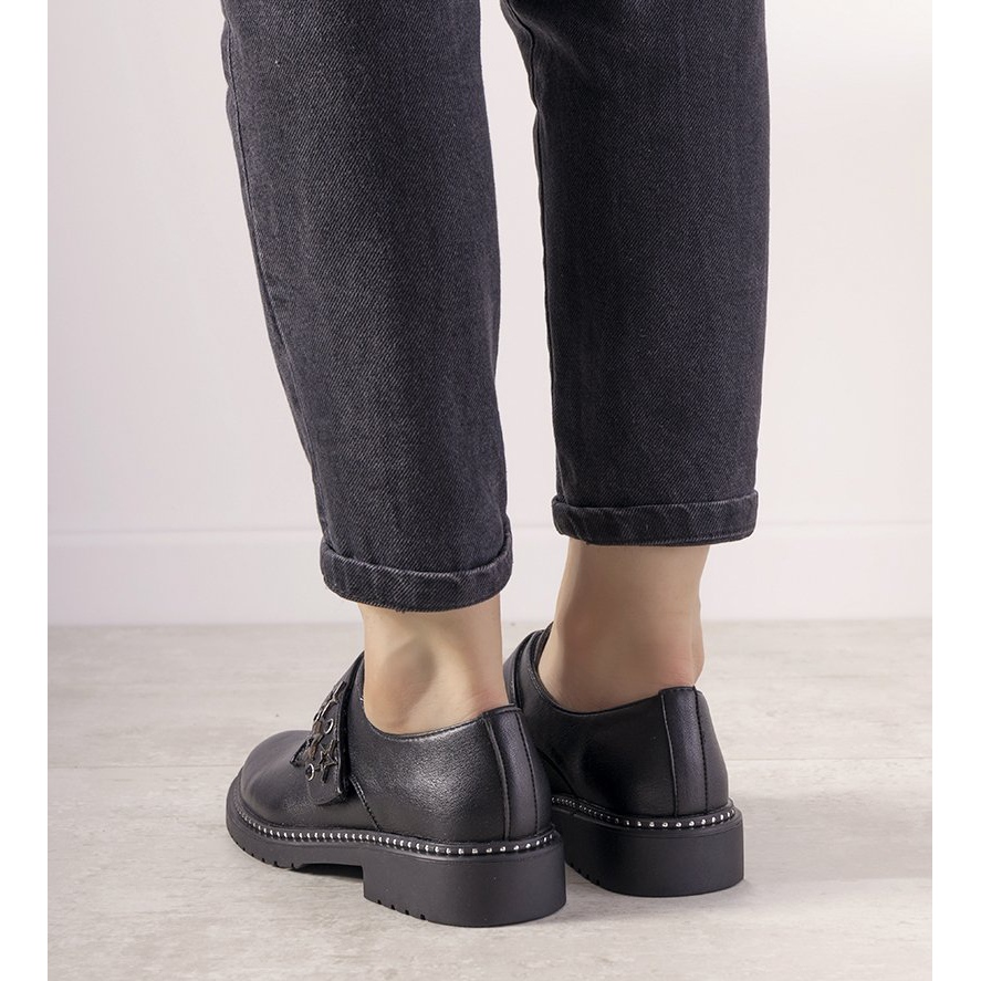 Srebrne slip-on cipele s nitnama GF-FD9 savršen su izbor za svaku modernu ženu koja želi spojiti stil s udobnošću. Izrađene od visokokvalitetne ekološke kože, ove elegantne crne cipele s metalik detaljima zasigurno će privući pažnju mnogih ljudi.