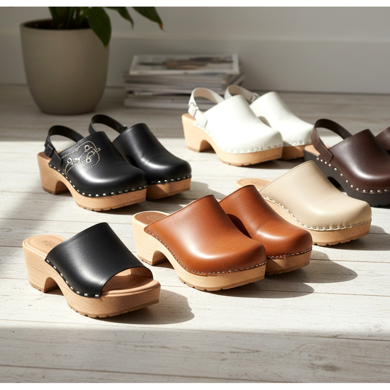 Ponuda klompi danas je impresivno široka. Tradicionalne klompe s drvenim potplatom i gornjim dijelom od kože klasik su koji će uvijek dobro pristajati ljubiteljima skandinavskog stila. Modeli od prirodne kože u nijansama konjaka, crne ili bež boje najsvestranije su varijante.