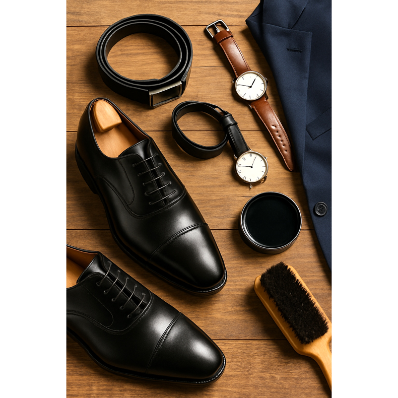 Cipele bi trebale biti u skladu s remenom, remenom za sat i drugim kožnim dodacima. Crne cipele s crnim remenom, smeđe sa smeđim.