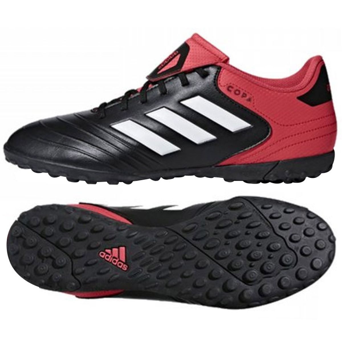Adidas Copa Tango 18.4 Tf M CP8975 tenisice savršen su izbor za svakog nogometnog navijača koji želi spojiti udobnost s visokom kvalitetom i atraktivnim dizajnom. Ovaj model, u elegantnoj crnoj i crvenoj boji, zasigurno će privući pažnju na terenu.