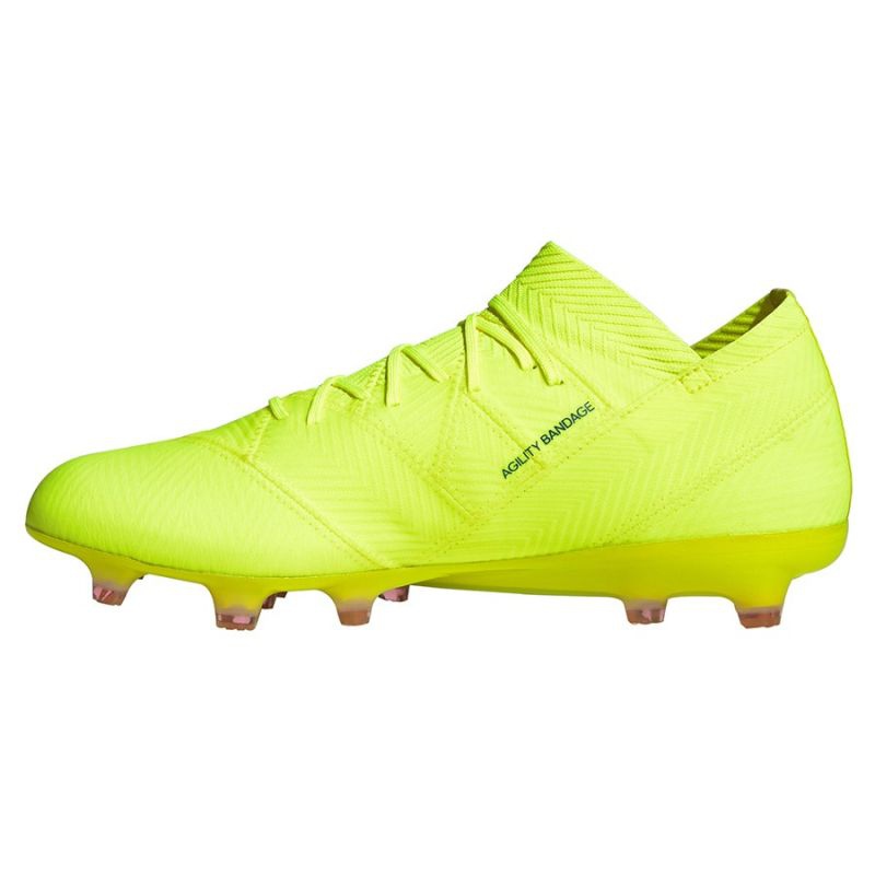 Adidas Nemeziz 18.1 FG M BB9426 tenisice izvrstan su izbor za sve ljubitelje nogometa koji ne samo da cijene samo stil, već i najvišu kvalitetu izrade. Ove muške kopačke jedinstvenog su dizajna u intenzivnoj žutoj boji koji će zasigurno privući pažnju na terenu.