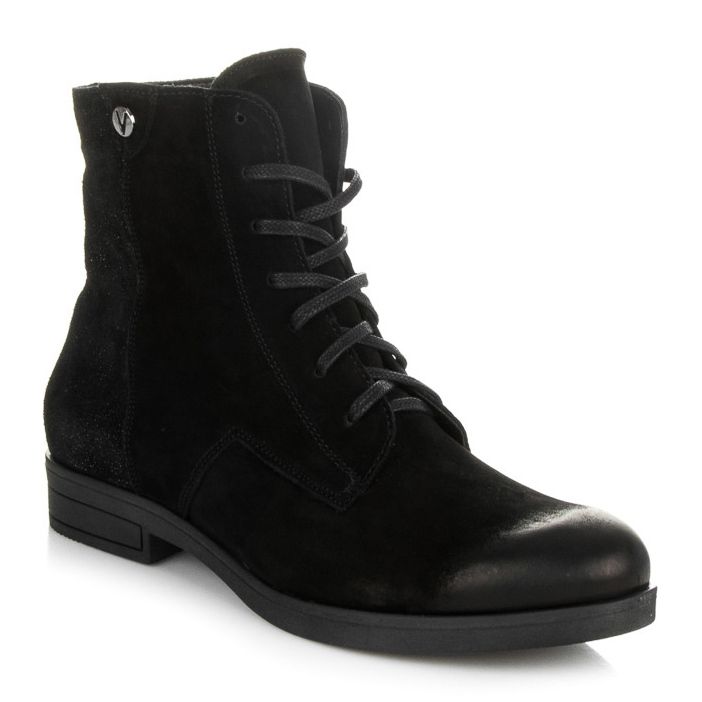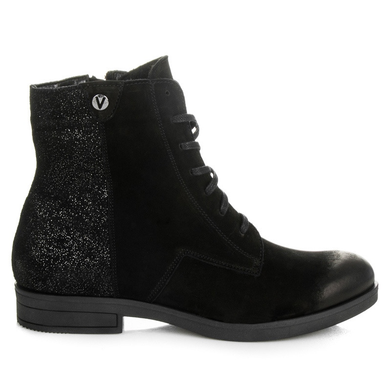 Crna boja čini da ove cipele odgovaraju mnogim stilovima - kako ležernim tako i malo formalnijim. Njihova visina do gležnja i okrugli vrh osiguravaju udobnost i stabilnost. Zahvaljujući ravnoj peti visokoj 3 cm možete uživati u svakom koraku bez osjećaja umora.