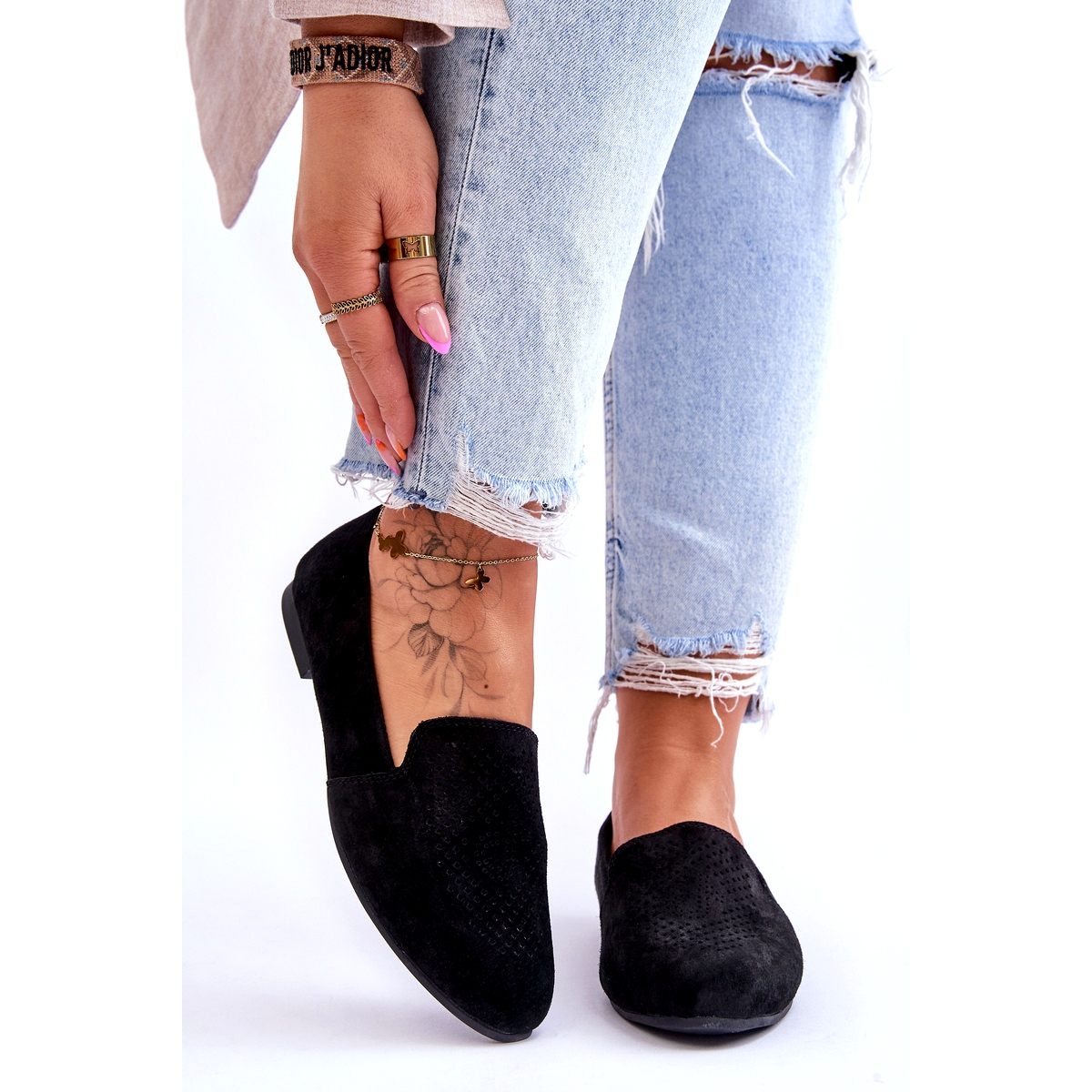 Lijekovi u ravnim potpeticama, ovi loaferi osiguravaju utjehu tijekom dana. Zahvaljujući potplatu bez klizanja, možete biti sigurni u stabilnost čak i na skliskim površinama. Osim toga, umetak napravljen od udobne prirodne kože pobrinut će se za vaša stopala, nudeći im odgovarajuće jastuke i podršku.