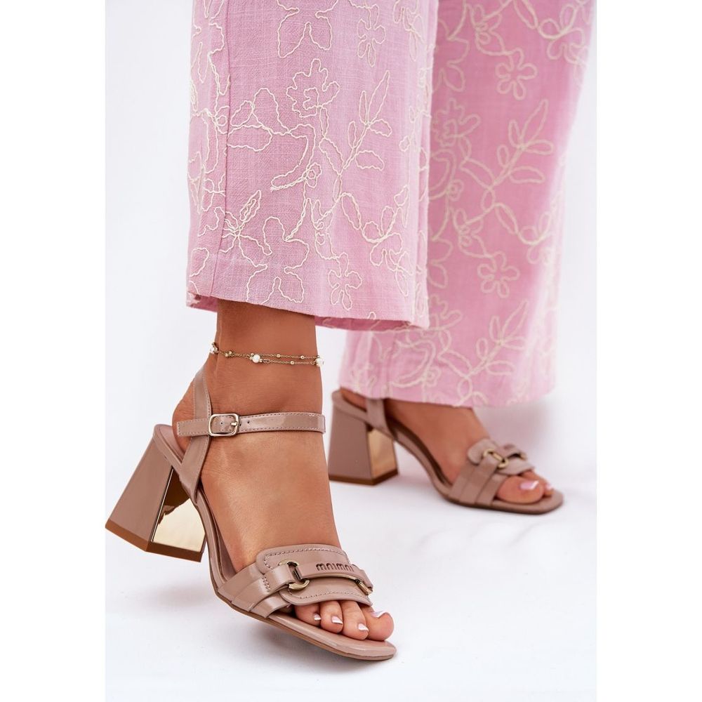eVento EVento Kožna lakirana ženska sandala na pošti bež