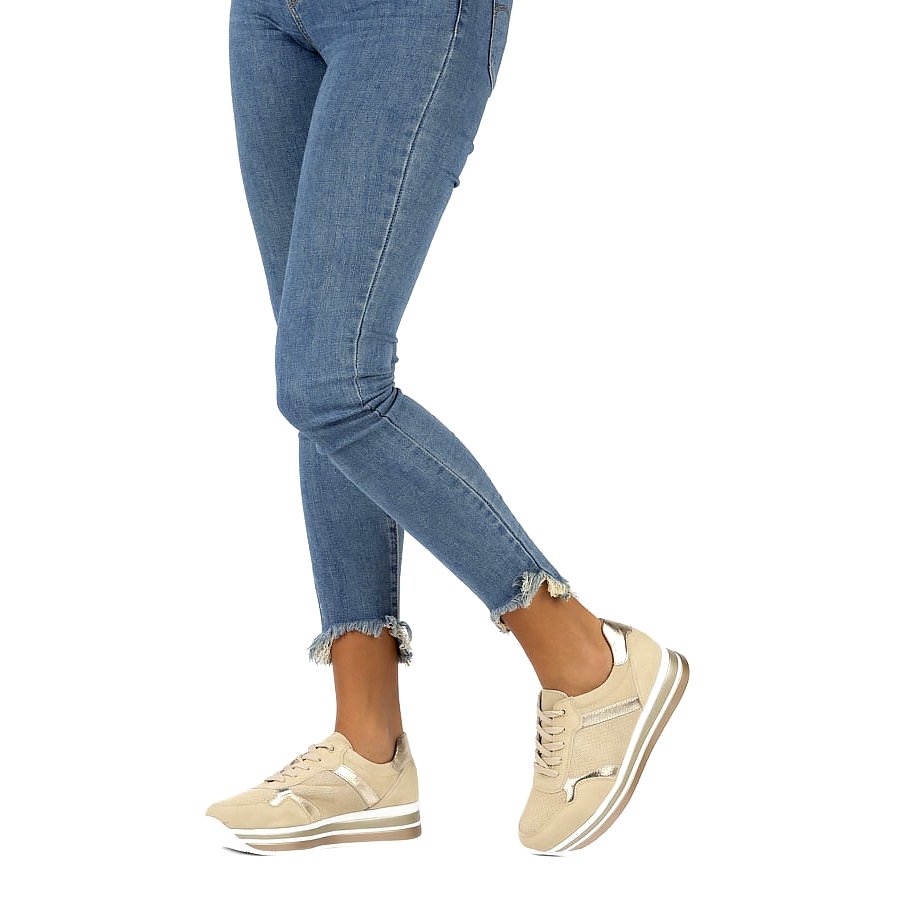 Pojedinosti: Kožne antilop tenisice Filippo DP2004 / 21 BE bež zlatni