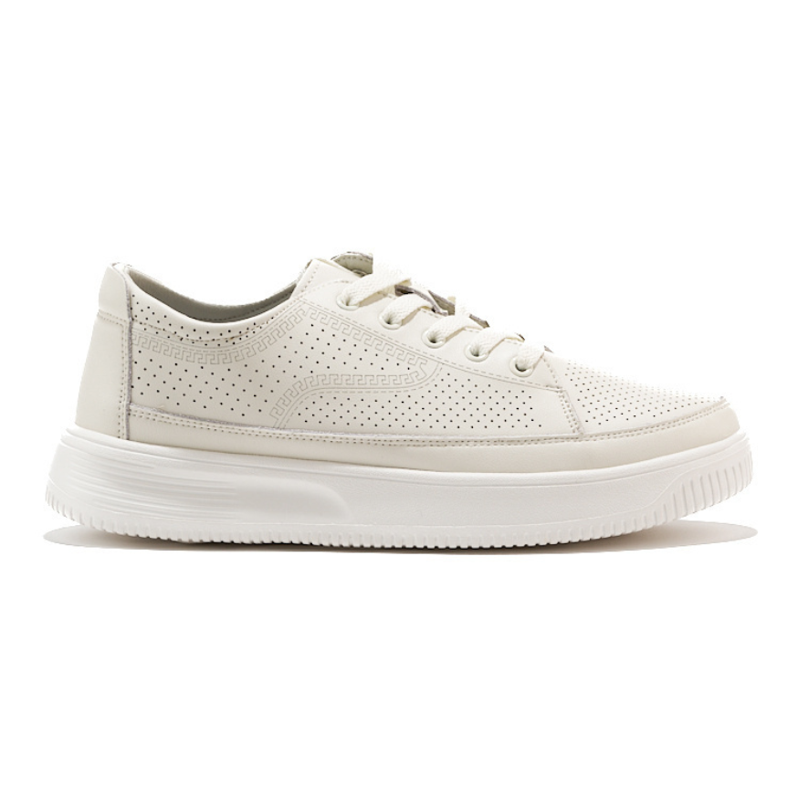 Bijele tenisice Sergio Leone karakteriziraju okrugli nos i ugrađena peta, što im daje moderan karakter. Plastični potplat s visokom platformom od 3 cm osigurava jastuk i udobnost prilikom hodanja. Dodatna prednost je uložak od prirodne kože koji utječe na udobnost i zdravlje stopala.