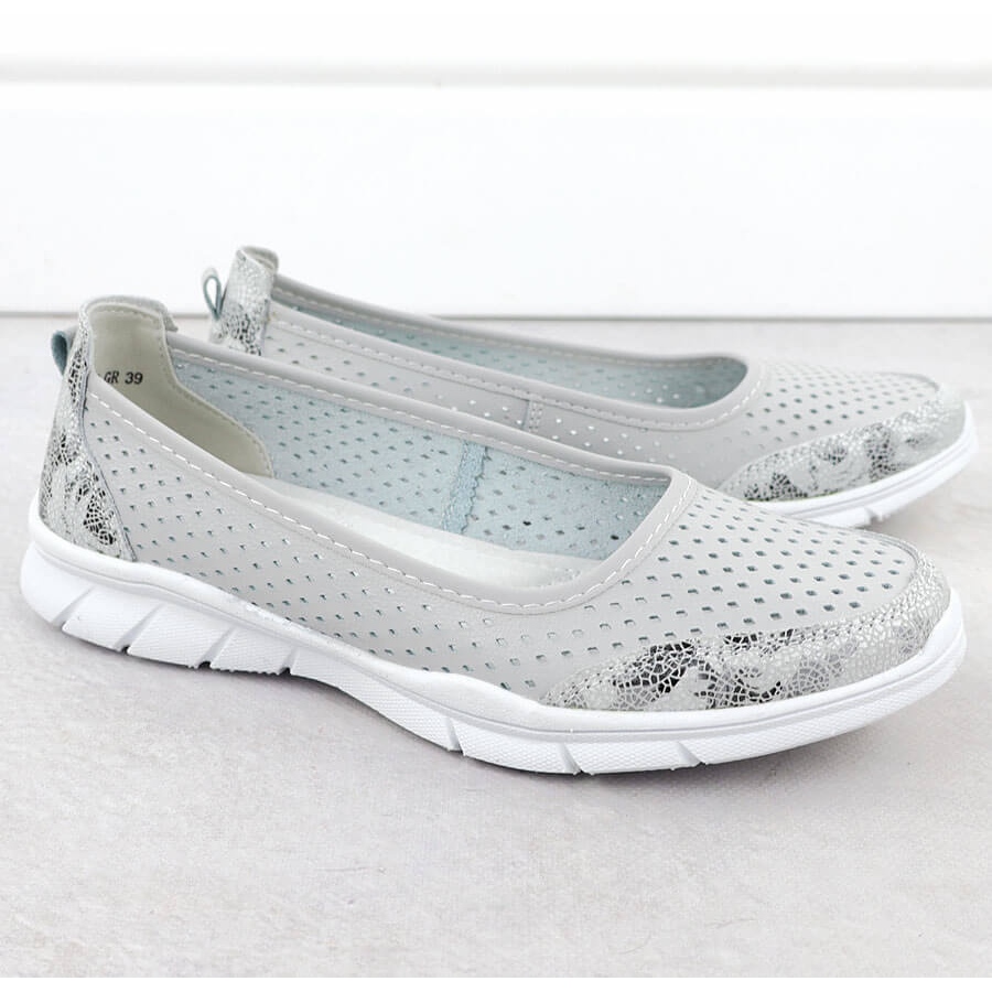 Vinceza Kožne balerine otvorene udobnosti siva vinceza 95323