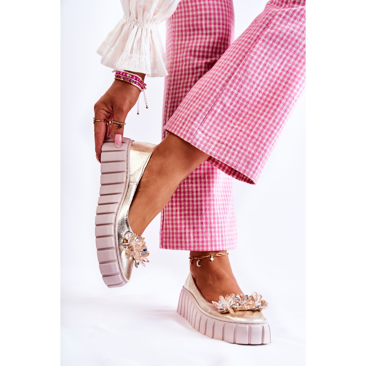 PA2 Kožne balerinke na platformu sa zlatnim ladette ornamentom
