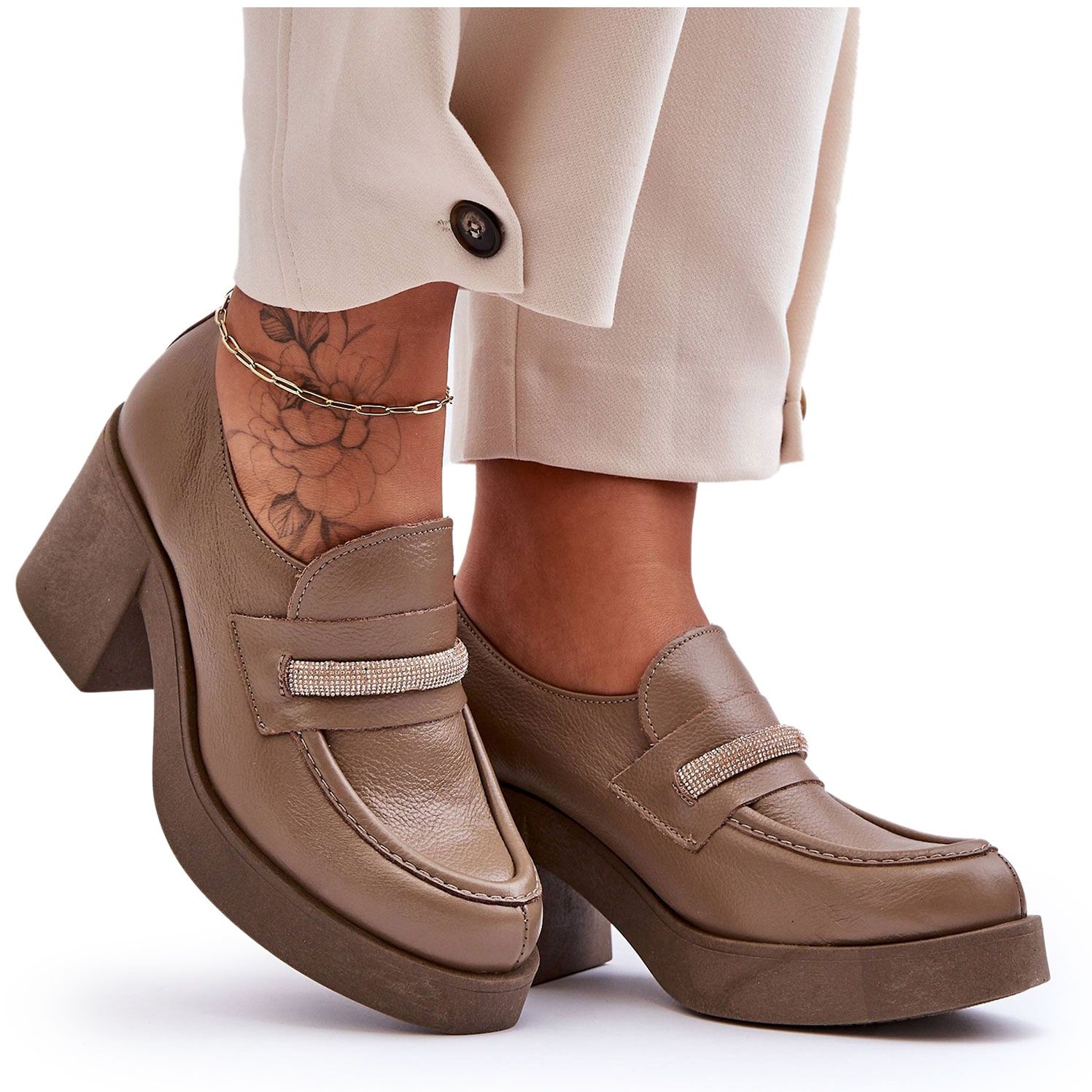 Lemar kožne cipele na posta s ukrasom - tamna bež (V. fango)