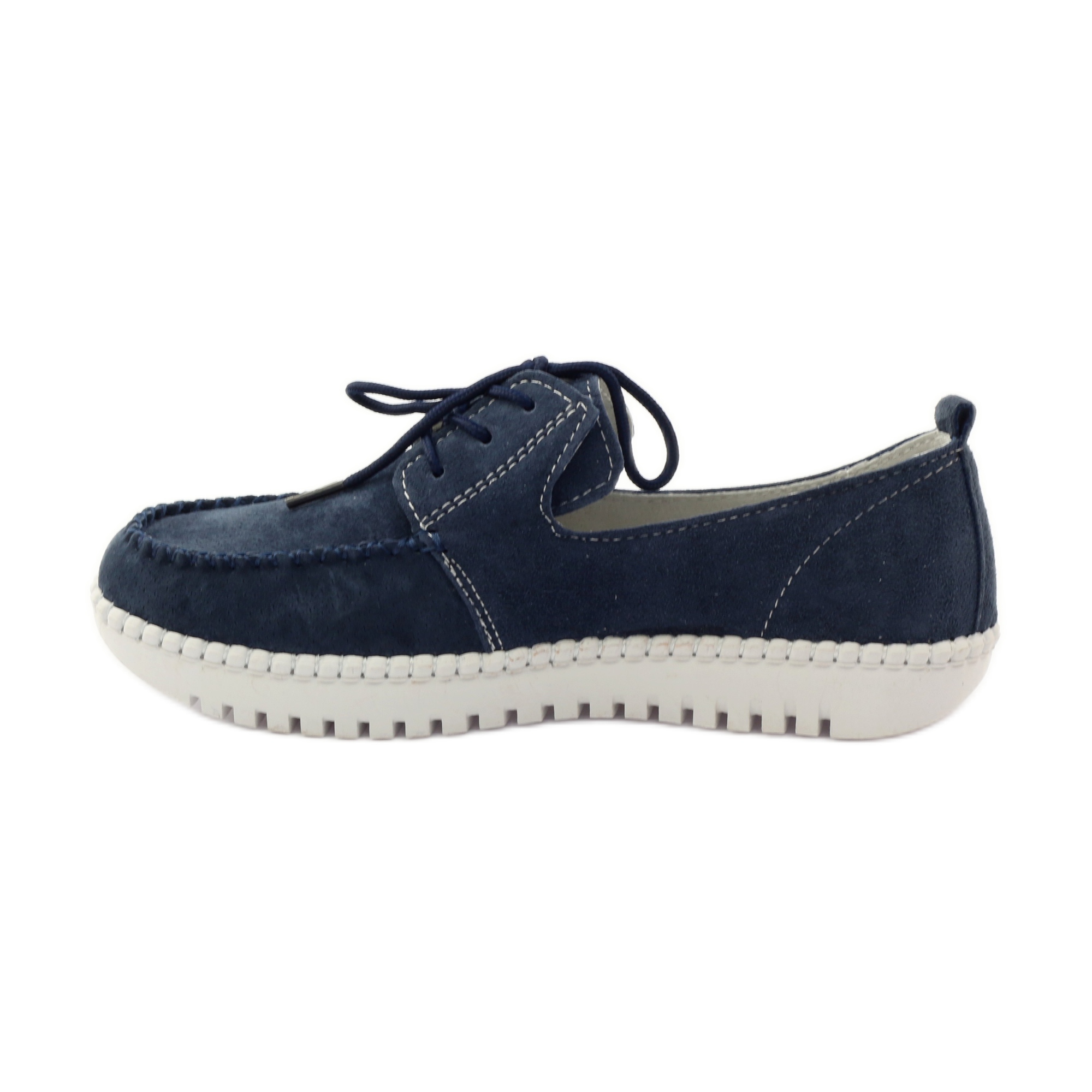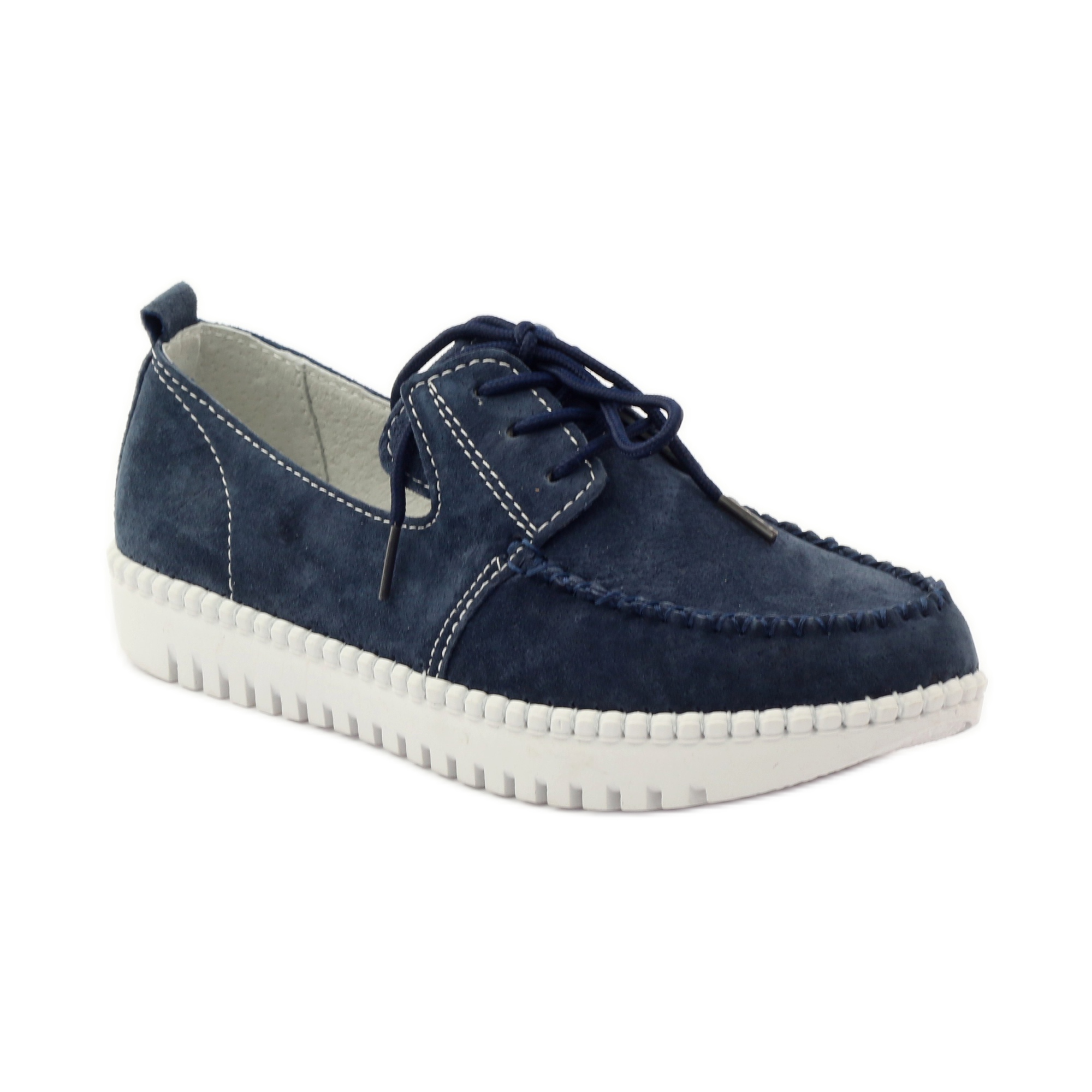 Gornjište i unutrašnjost ovih cipela izrađeni su od prirodne kože koja ne samo da osigurava izdržljivost, već i izvrsnu prozračnost, što je posebno važno u toplijim danima. Mornarsko plava boja cipela, upotpunjena bijelim šavovima, daje im moderan i moderan izgled.