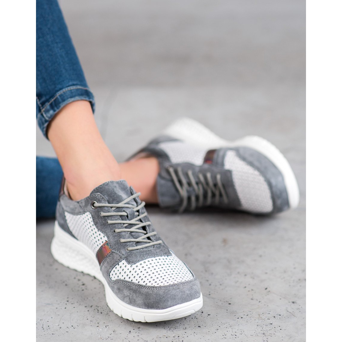 Otkrijte jedinstven stil i udobnost uz Filippo cipele u modernoj bijelo-sivoj varijanti! Ove iznimno moderne ženske cipele spajaju moderan dizajn i funkcionalnost. Holografski umetci daju im jedinstveni karakter koji privlači pažnju, a ažurni uzorak dodaje lagan i prozračan izgled.