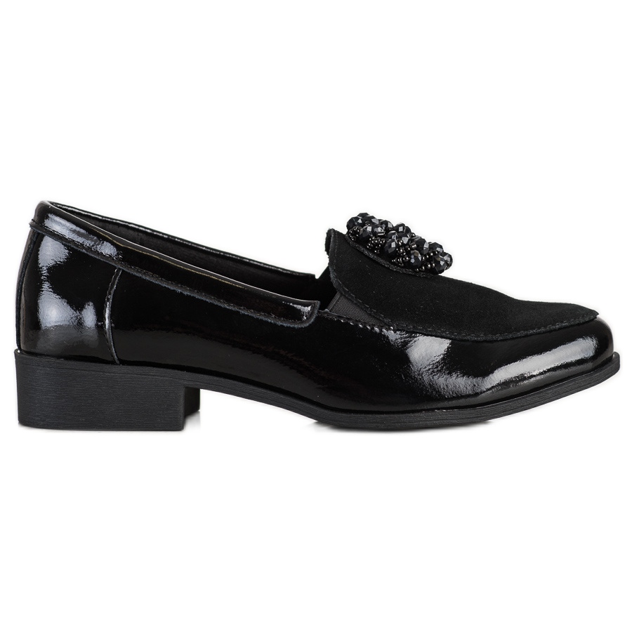 Zanimljiv element ovih cipela su kamenčići i lakirani završeci koji im daju suptilan sjaj, savršeno pristajajući uz različite stilove. Plastični potplat s gazištem omogućuje dobro prianjanje, a slip-on kopča omogućuje brzo obuvanje i izuvanje.