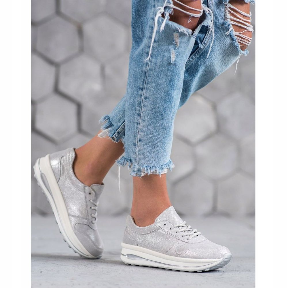 Pozivamo vas da otkrijete VINCEZA kožne sportske cipele sa svjetlucavim sjajem u elegantnoj nijansi sive. Ove modne tenisice savršen su spoj klasike i modernog, koji će se svidjeti svakoj ženi koja cijeni udobnost i stil.