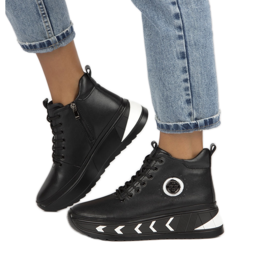 - Model: Kožne čizme na wedge DBT4214 / 22 BK