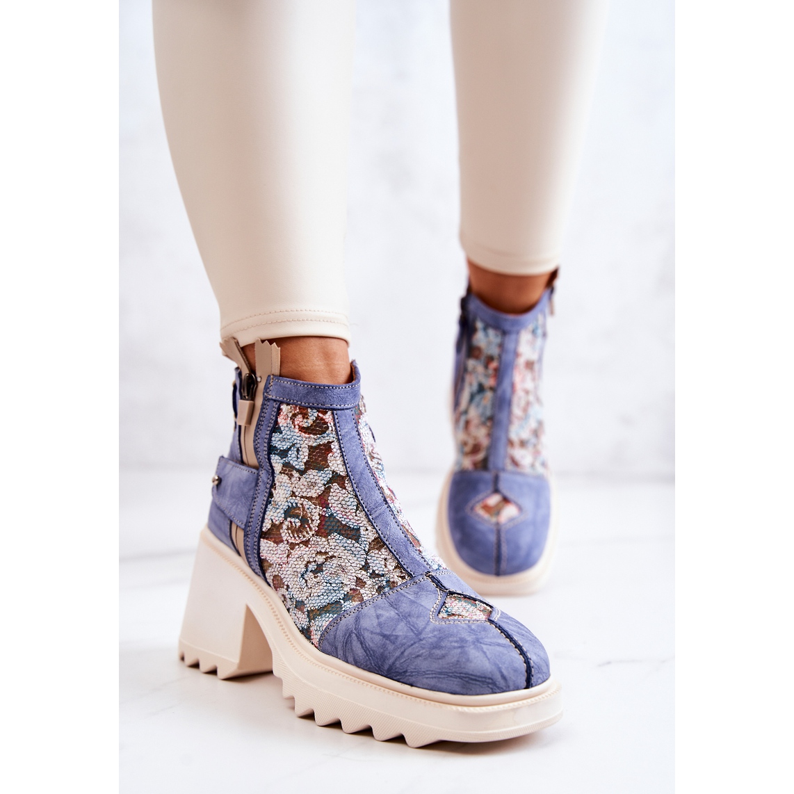 Maciejka Kožne čizme na masivnom stupu Maciejka Blue 05325-06 plava