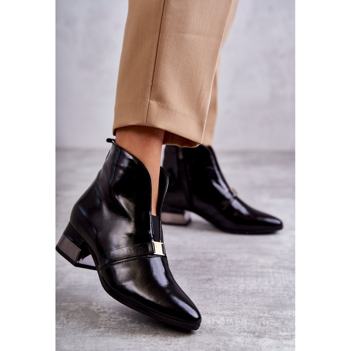 Praktični patentni zatvarač sa strane gornjeg dijela olakšava obuvanje i izuvanje, a ravna peta široka 4,5 cm osigurava dugotrajnu udobnost. Šiljati vrh dodaje moderni karakter cjelini, a ukrasna pločica na prednjoj strani razbija minimalistički stil, dajući cipelama jedinstveni šarm.