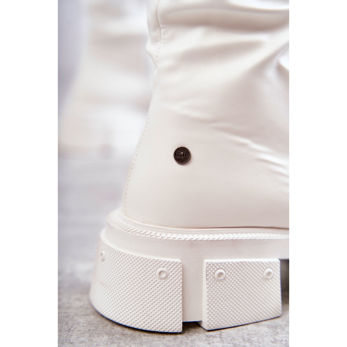 Pojedinosti: Kožne čizme preko koljena na ravnu petu GOE KK2N4022 Bijele bijela