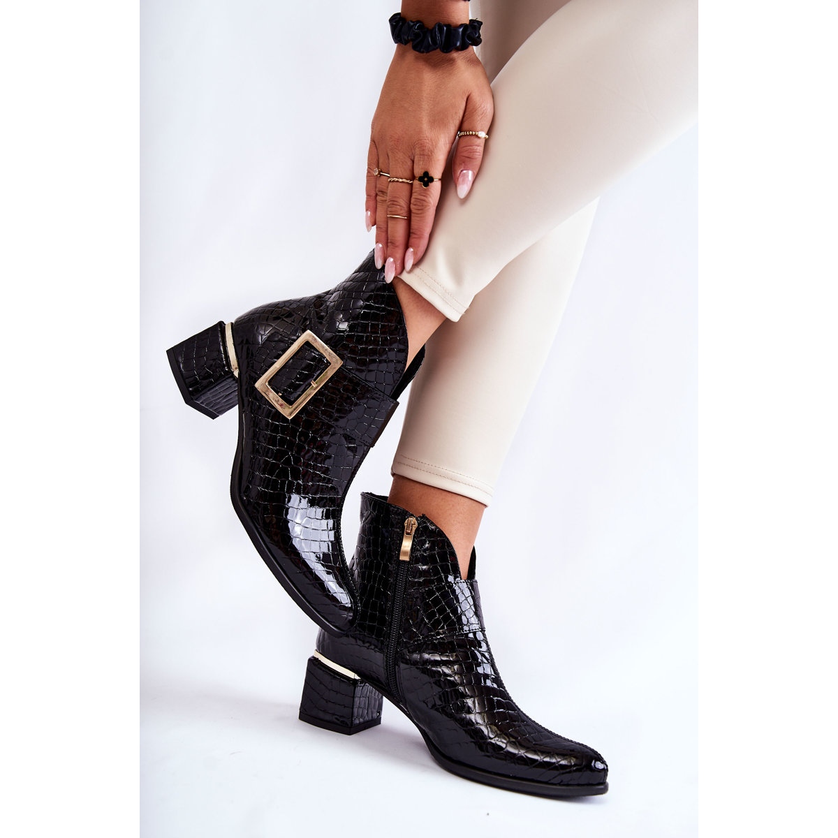 Pojedinosti: PA2 Kožne čizme s krokodilskim patentnim zatvaračem, crna Briana