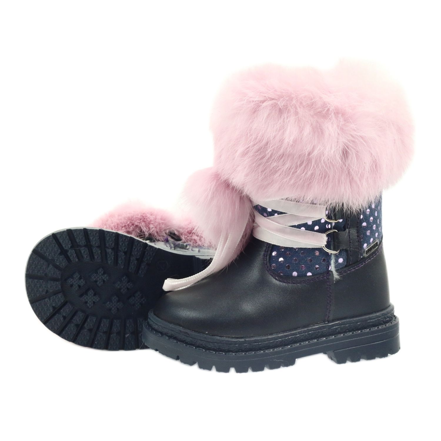 Opremljene chic puderastim prirodnim krznom, ove cipele izgledaju iznimno stilski, a njihove boje - tamnoplava s ružičastim detaljima - učinit će ih odličnom nadopunom svakom zimskom stajlingu. Unutrašnjost čizama ispunjena je inovativnom Relugan podstavom od ovčje vune, koja učinkovito zadržava toplinu, omogućujući malim nožicama udobno nošenje tijekom cijelog dana.