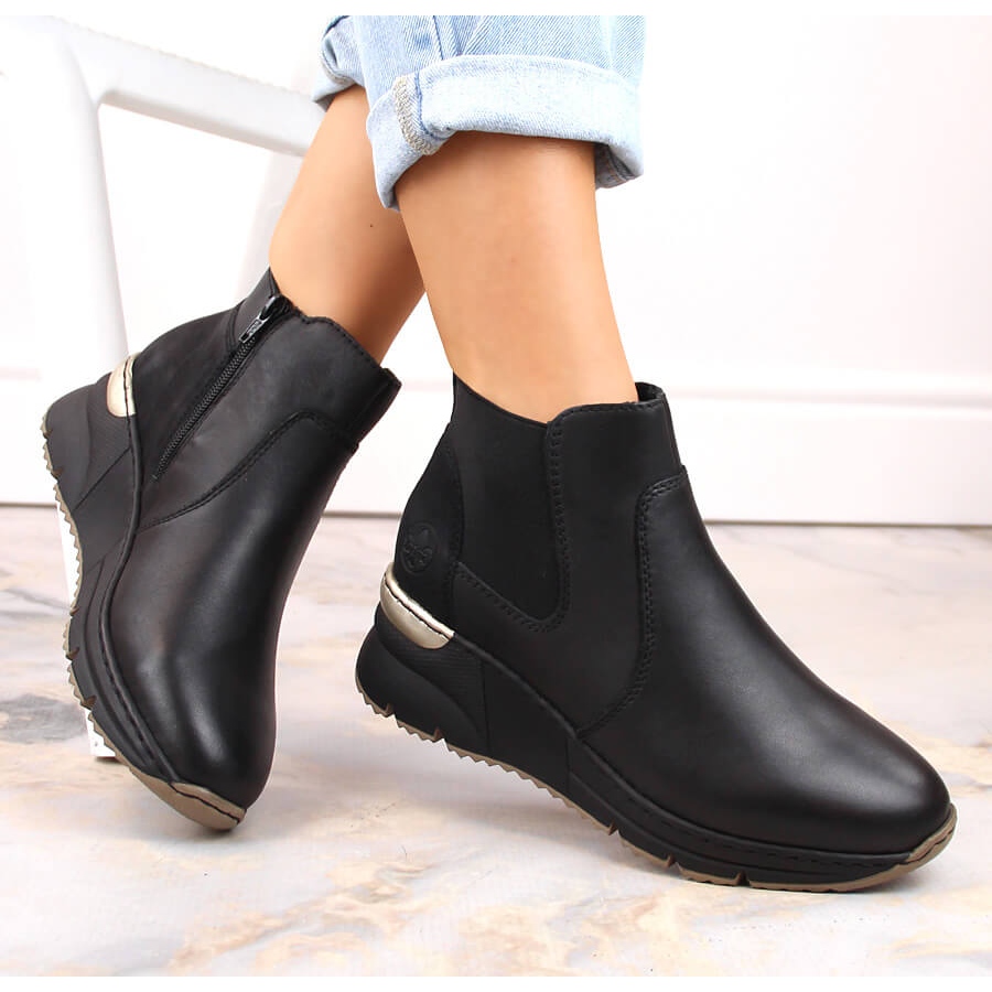 Pojedinosti: Kožne čizme, ženske crne wedge tenisice, Rieker crna