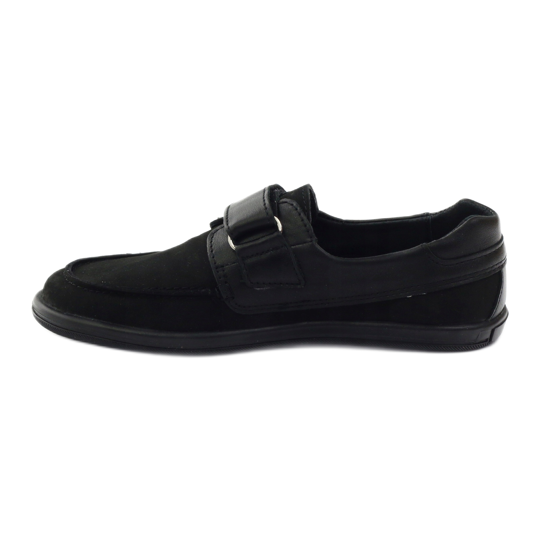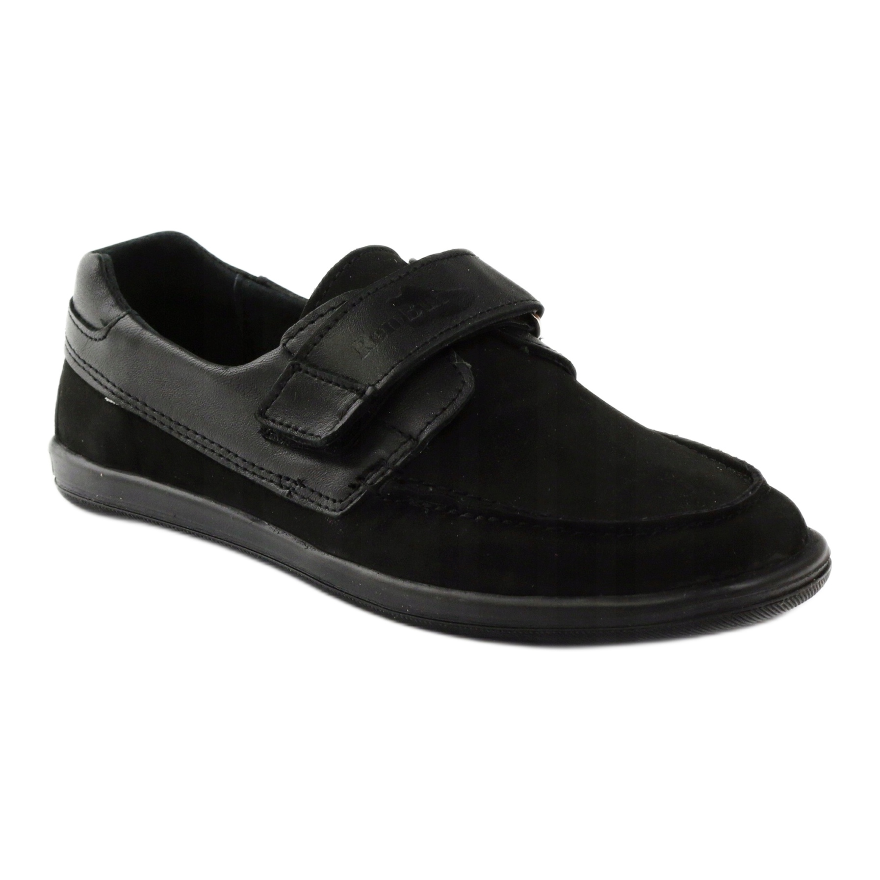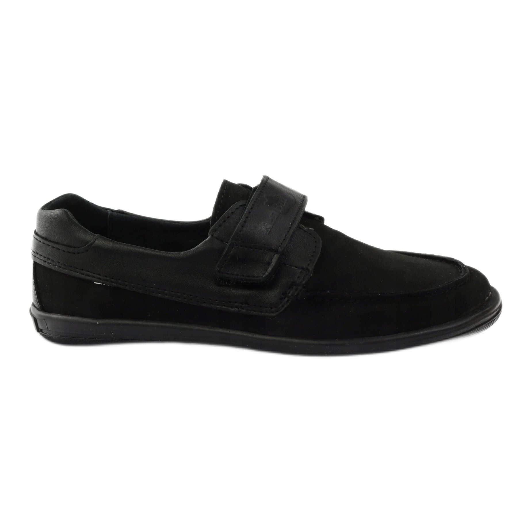 Klasične mokasine za dječake od meke nubuk prirodne kože univerzalne crne boje. Model 4249 kombinira udobnost i izdržljivost - kopča se čičak trakom za brzo prilagođavanje, s krutom petom za stabilizaciju stopala. Cijela unutrašnjost cipele obložena je prirodnom kožom, a antibakterijski, profilirani kožni uložak povećava udobnost nošenja. Potplat od termo gume jamči dobro prianjanje na raznim podlogama - savršeno za hladnije dane.