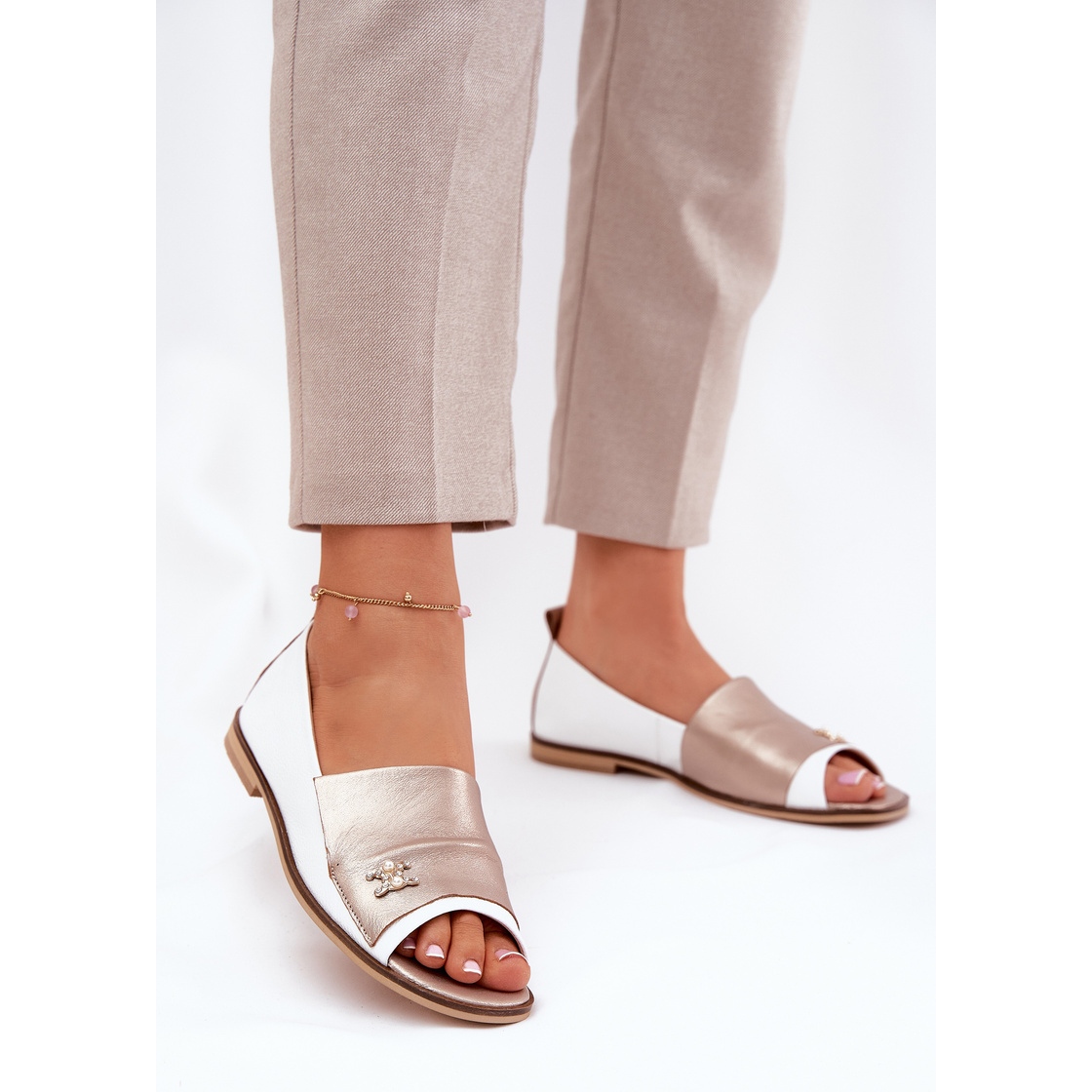 Zazoo Kožne elegantne balerine s golim prstima Zazoo 1865 bijelo i zlato bijela