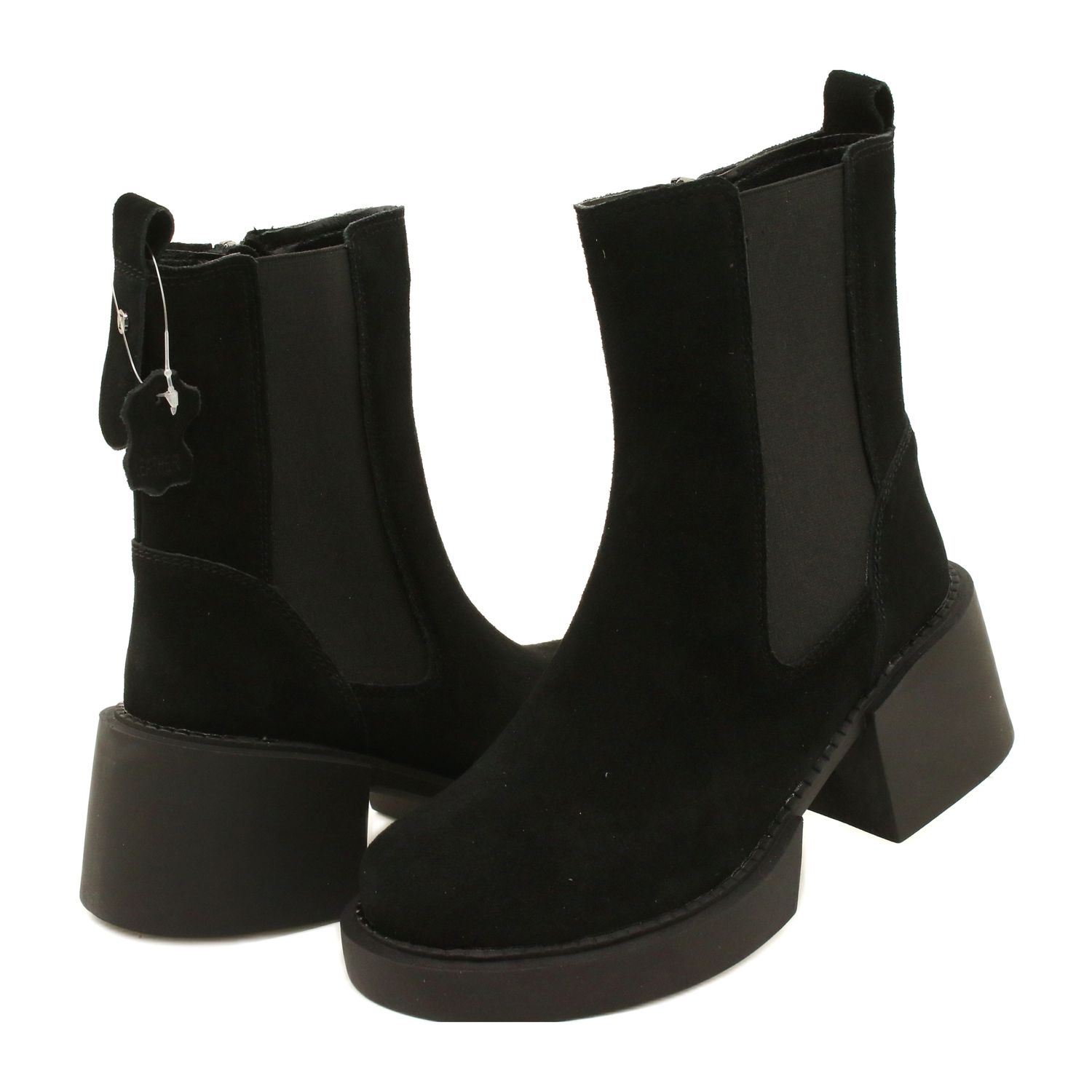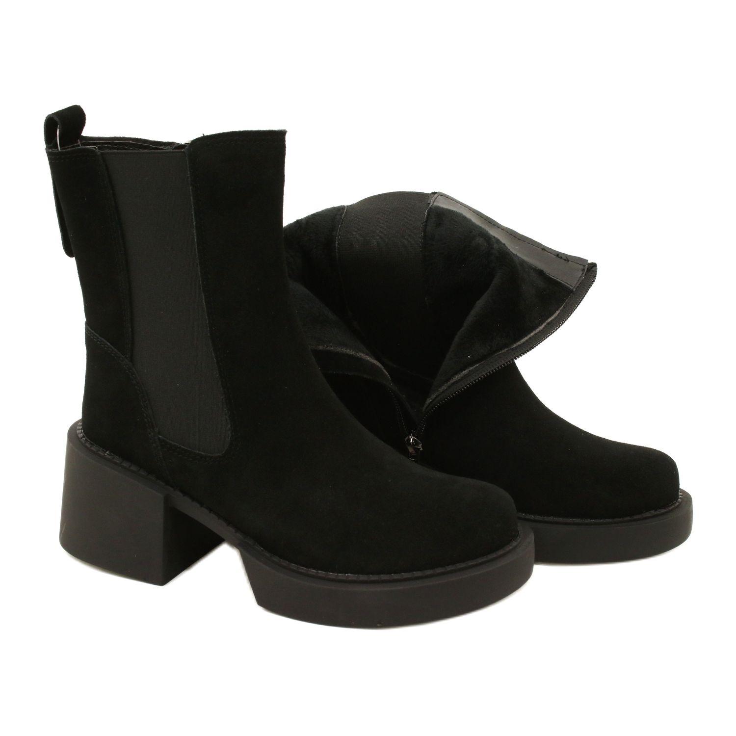 - Model: Kožne gležnjače s visokom petom od brušene kože u crnoj boji