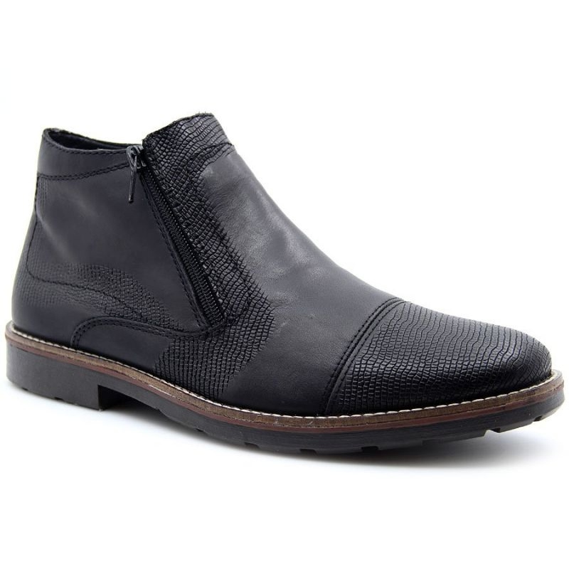 Elegantne, ugodne i praktične muške čizme Rieker M RKR269 stvorena za hladnije mjesece. Klasična, crna prirodna koža u kombinaciji s izoliranom oblogom (ovčjina) jamči toplinu i udobnost tijekom jeseni i zime. Bočni zatvarač zatvarača olakšava postavljanje, a elegantni oblik čini da model odgovara i ležernijim i elegantnijim stilovima.