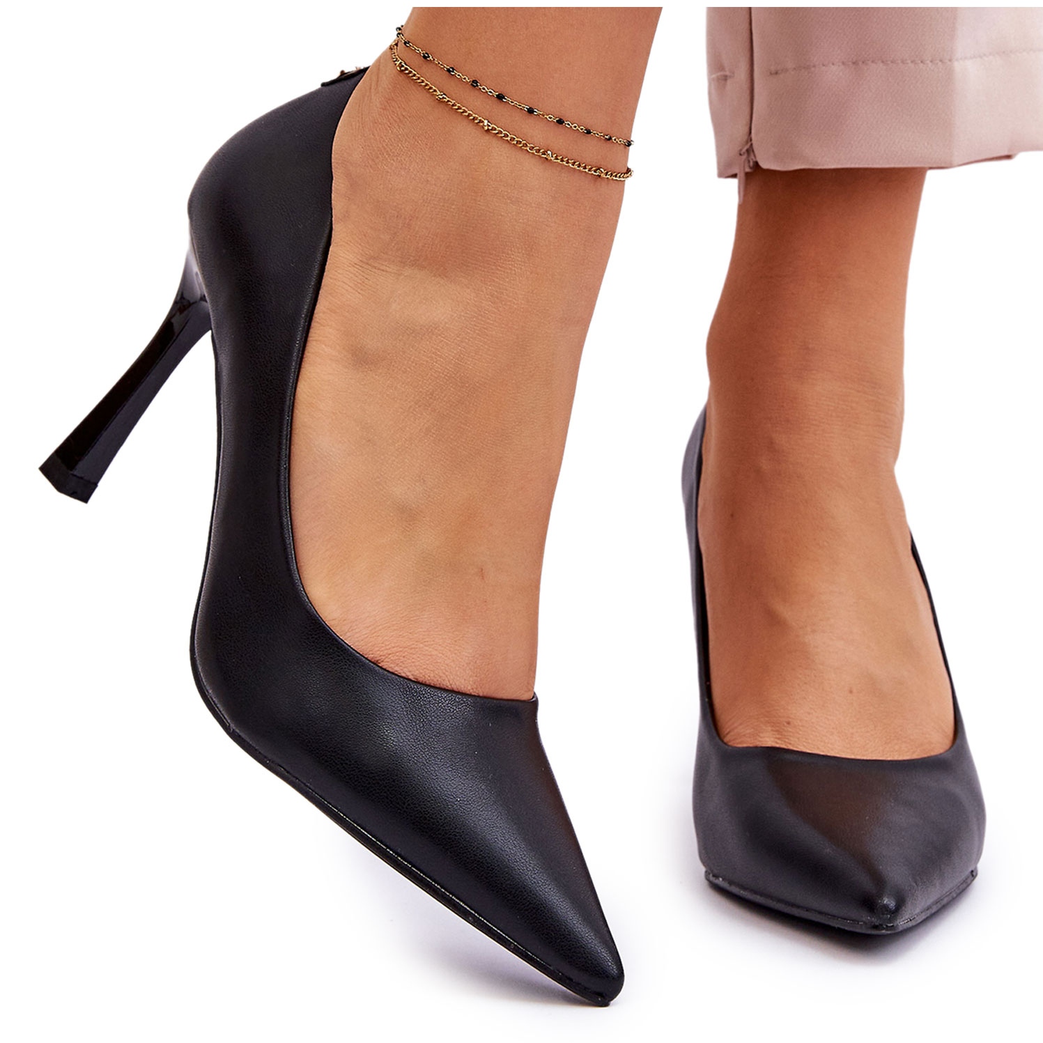 Vinceza Kožne klasične visoke potpetice crne Kelsey crna