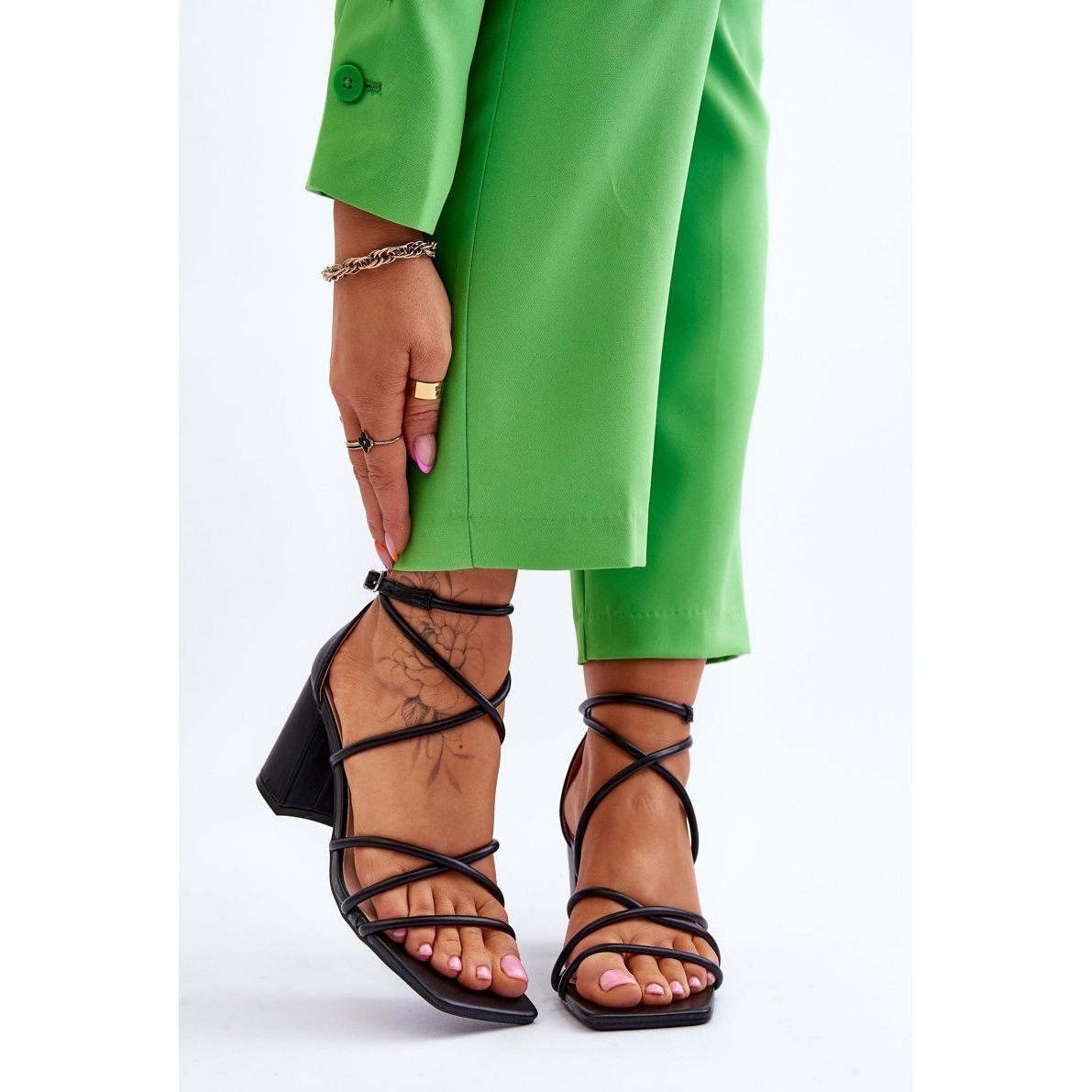 Mekani uložak od eko kože jamči udobnost i nakon duljeg korištenja, što ove sandale čini savršenim suputnikom kako za svakodnevnu upotrebu tako i za svečanije prilike. Zbog svoje univerzalne crne boje ovaj se model savršeno slaže uz mnoge stilove - od prozračnih haljina do elegantnih hlača.
