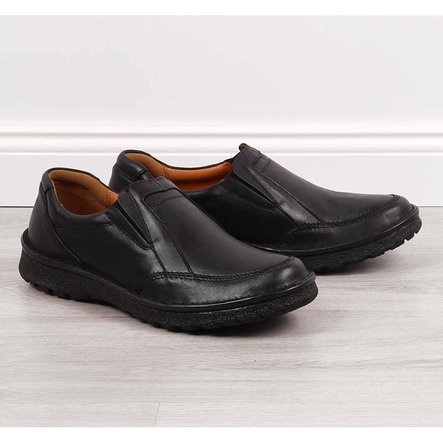 Pojedinosti: Kožne muške slip-on cipele, crne Łukbut 946 crna