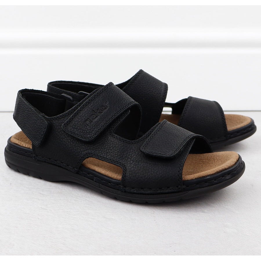 Pojedinosti: Kožne muške udobne crne sandale crna rieker 25558-01