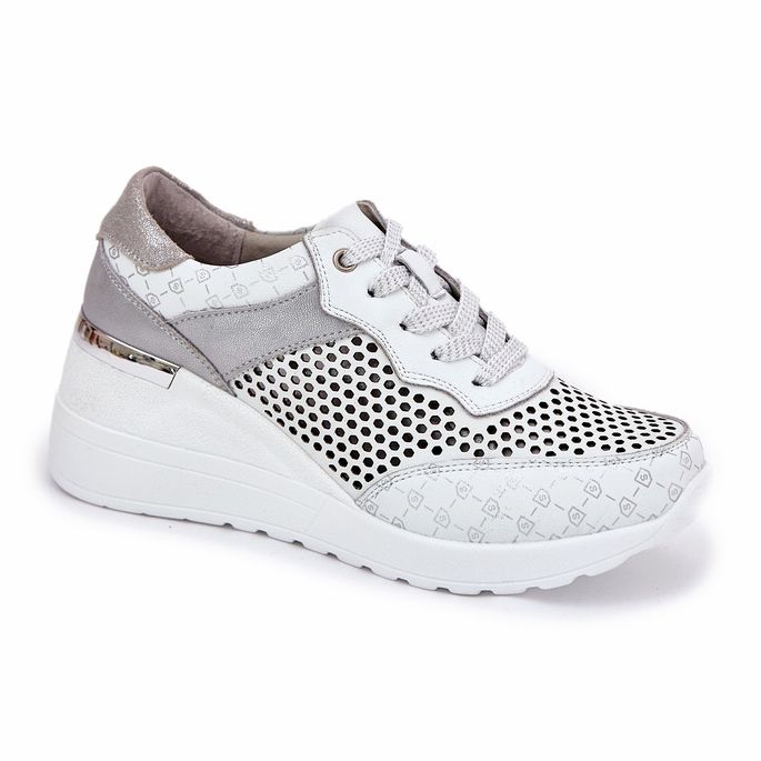 Detalji: Kožne otvorene sportske cipele tenisice na klinu S.Barski LR51-641 White bijela