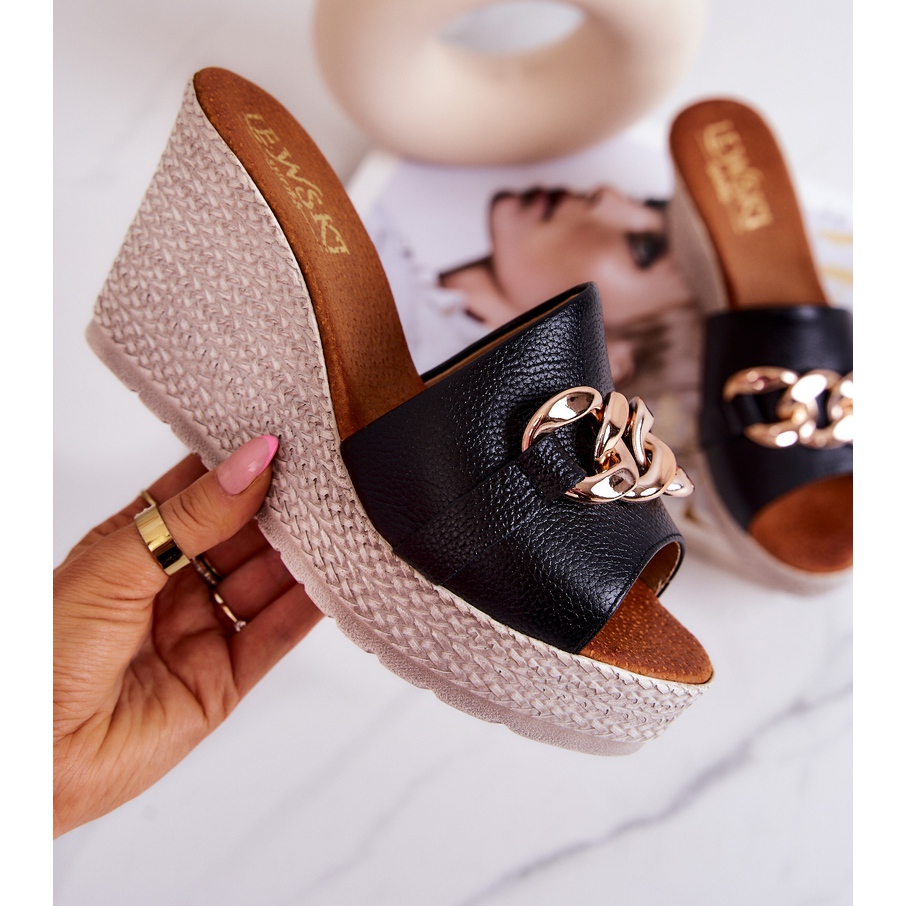 Pojedinosti: Lewski Shoes Kožne papuče na klin Lewski 3062 Black crna