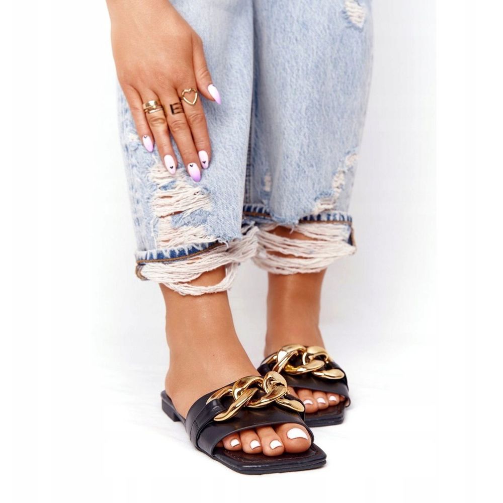 Kožne papuče s lancem Crni francuski poljubac crna zlatni