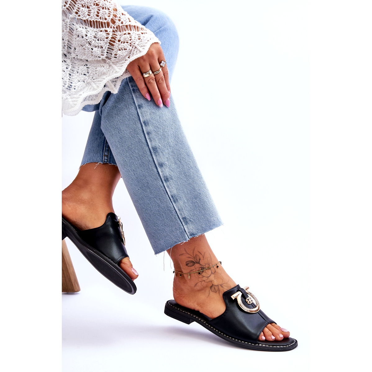 Ovaj model je postavljen na ravnu potpeticu visine 2 cm, koja osigurava udobnost i pri dužem nošenju. Dodatno, ukrasi u obliku nitni na potplatu daju japankama jedinstven izgled. Crna vanjska strana sa suptilnim zlatnim detaljima čini japanke savršenim za različite stilove, kako ljetne tako i casual.