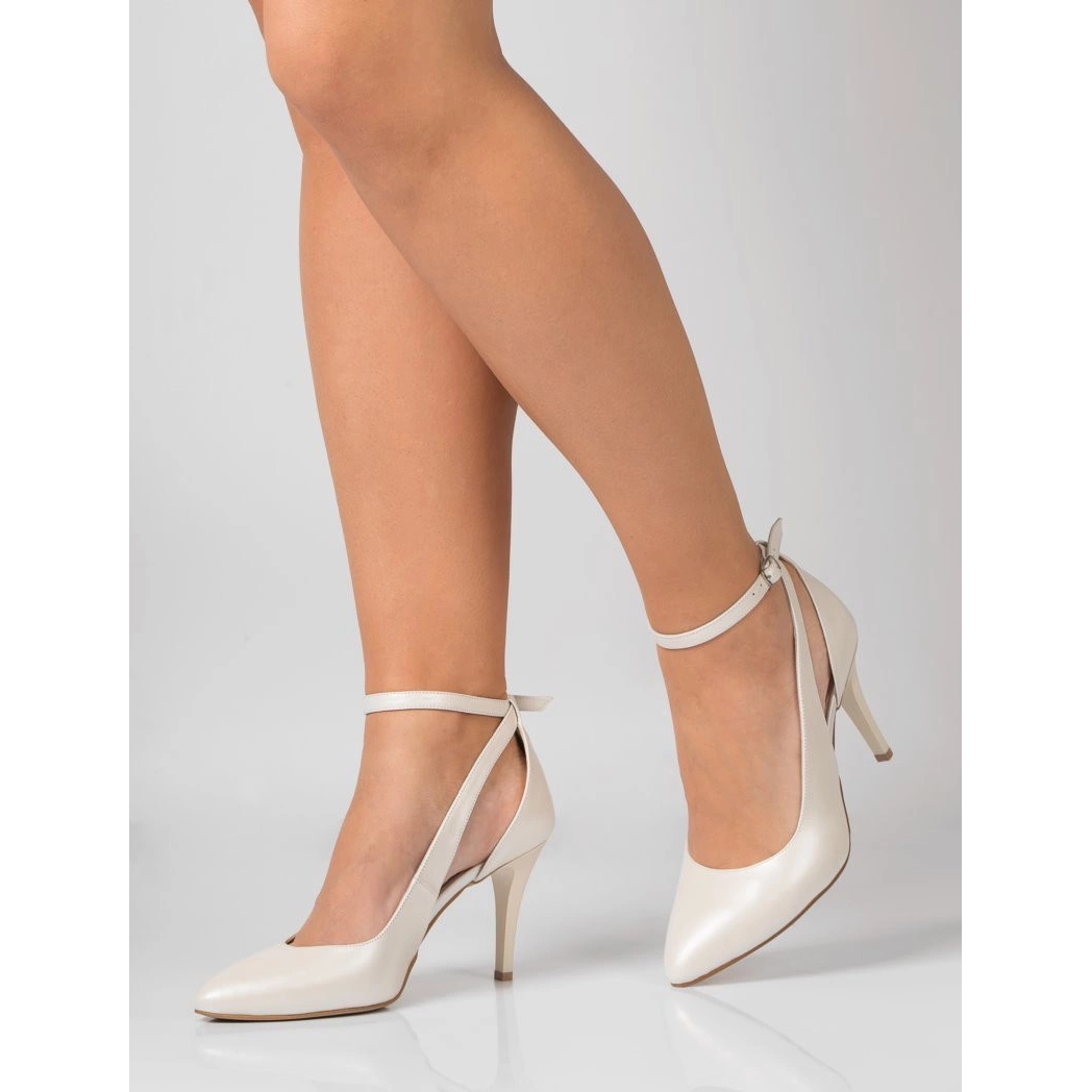 Detalji: BUTDAM Kožne plesne visoke potpetice koje se kopčaju na gležnju s ecru izrezom od Livie bijela