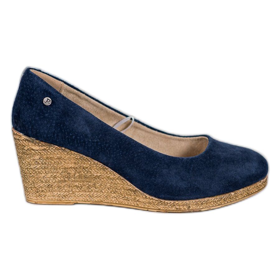 Otkrijte eleganciju i udobnost uz cipele na klin iz Filippa. Ove prekrasne plave ženske cipele izrađene su od visokokvalitetne prirodne kože, što ih čini ne samo izdržljivima, već i vrlo udobnima za nošenje. Njihova glatka površina izgleda elegantno, a suptilni naglasak u obliku metalne, okrugle kopče sa strane dodaje originalnost.