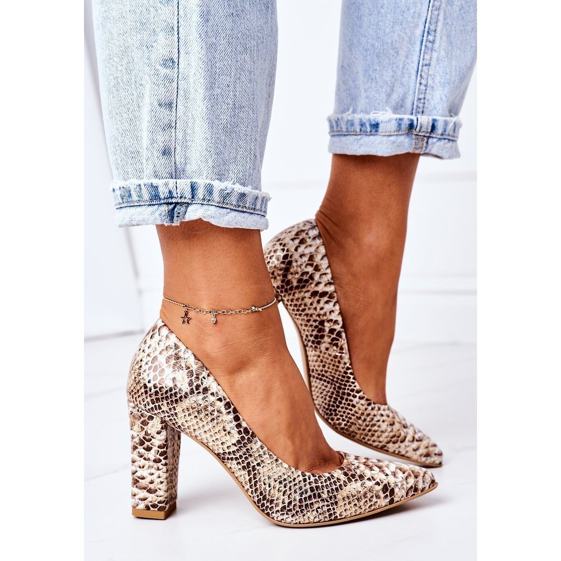 Lewski Shoes Kožne pumpe sa uzorkom od zmijske kože Lewski cipele 2453 zlatne zlatni