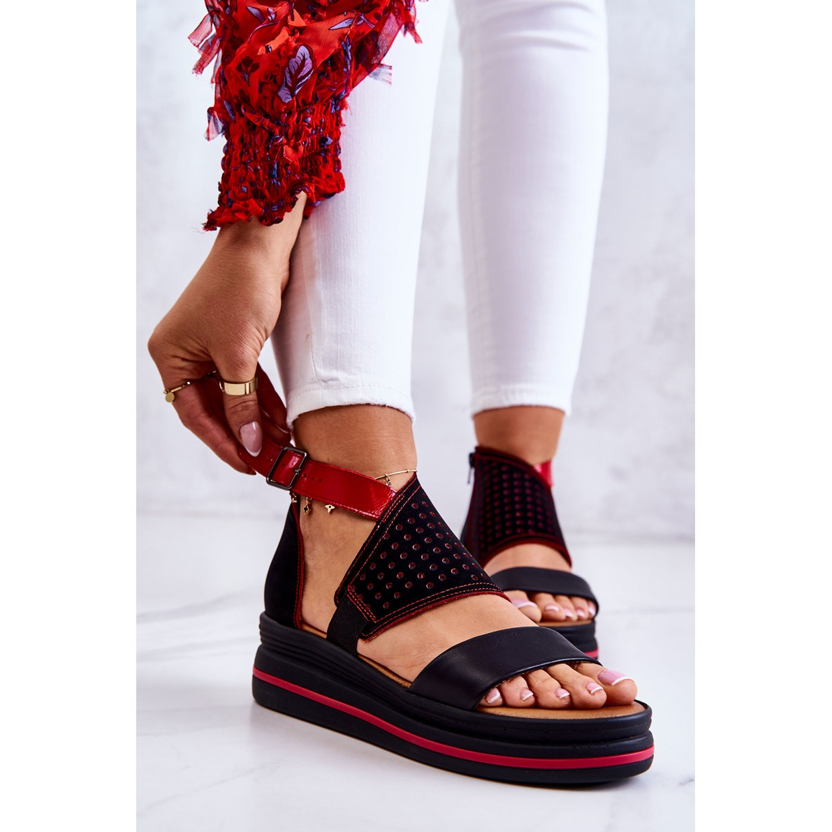 Pojedinosti: Kožne sandale na klin Maciejka 05356-01 crne i crvene crna crvena